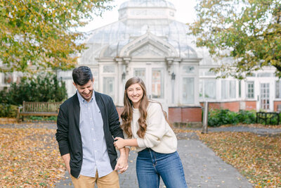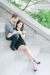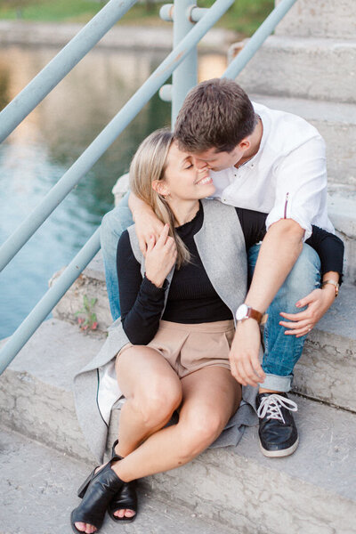 Generally couples pick two outfits for an engagement session: a more formal outfit and a casual outfit. We recommend saving your favorite outfit for later in the session, when couples usually feel more comfortable in front of the camera. And don’t forget to bring a few accesorries! Statement necklaces, cute shoes and classic watches are great ways to add detail to outfits.
