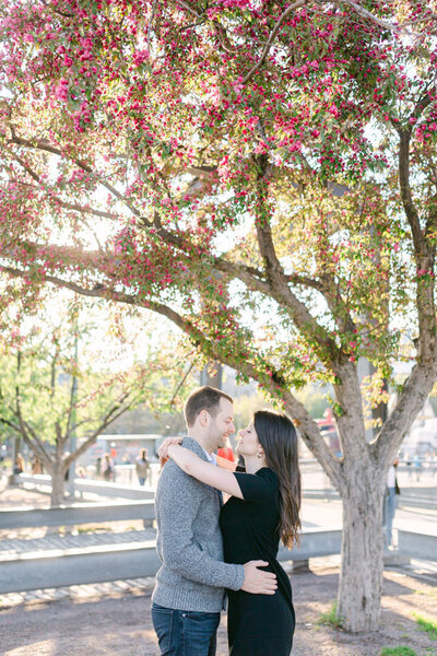 We love when couples choose a location for their session that complements their wedding. For example if you’re planning a chic, elegant wedding, it may be fitting to take your engagement portraits among the classic architecture in Old Montreal, while a local park or flower-filled fields may be more fitting for a couple planning a more rustic affair. The best session locations are often meaninful places to the couple; however, we’re also happy to make recommendations. From European architecture to lavender fields to apple picking and beaches, the options for engagement session locations are endless!